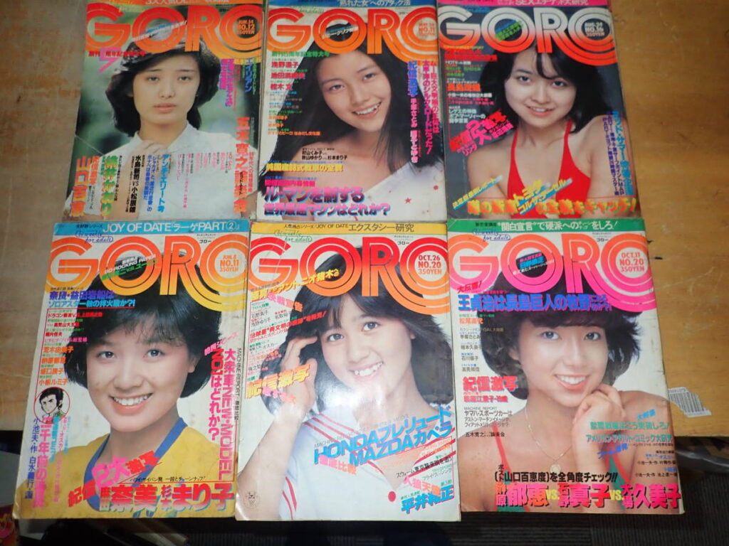 古雑誌の中でも「GORO」は人気が高く、特定のアイドルが表紙や特集に取り上げられた号はプレミア価格がつくことも。特に1970年代後半の発行号は、市場でも流通数が減っており希少性が増しています。
