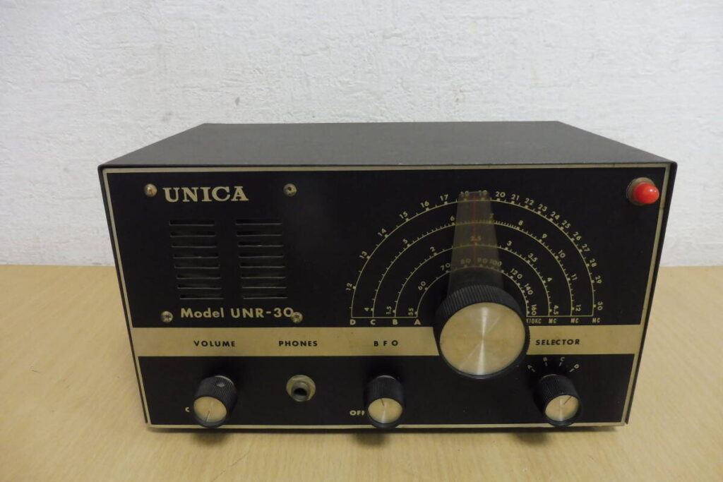 UNICA(ユニカ)UNR-30は、昭和期に製造された真空管式受信機で、当時の日本製ラジオ技術を色濃く反映したモデルです。業務用・研究用途として使われていた可能性もあり、一般的な家庭用ラジオとは異なる重厚感があります。