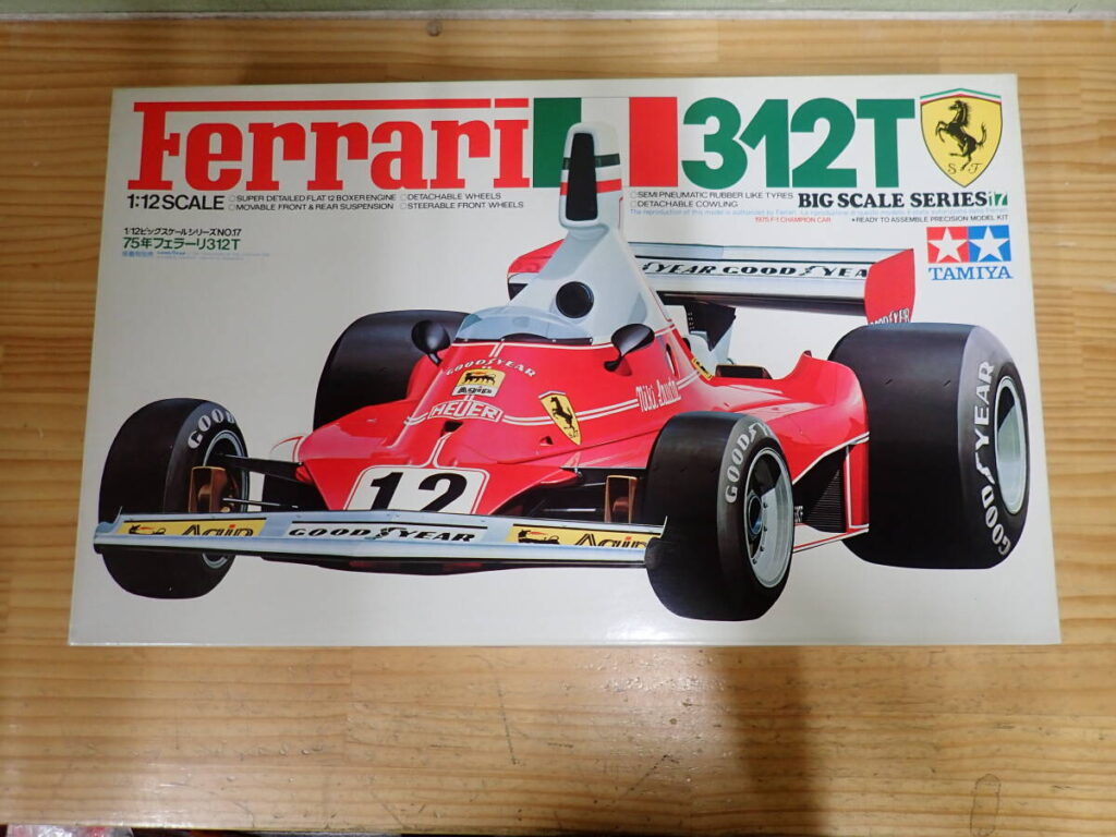 タミヤの1/12ビッグスケールシリーズ No.17「75年フェラーリ312T」は、実車のディテールを徹底的に再現した大型キットです。フラット12エンジンやサスペンション構造、コックピット内部まで精巧に表現されており、模型としての完成度が非常に高いのが特徴です。